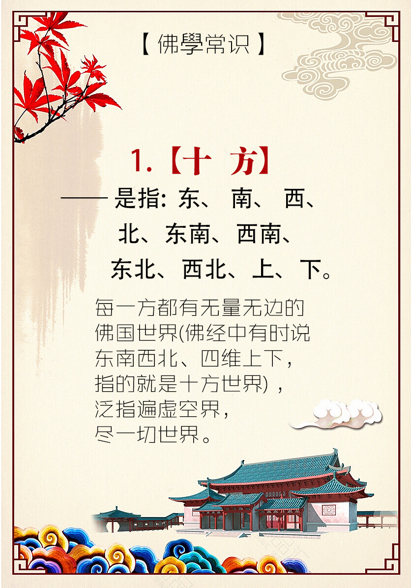 每一方都有无量无边的佛国世界(佛经中有时说东南西北、四维上下,指的就是十方世界) ,泛指遍虚空界,尽一切世界