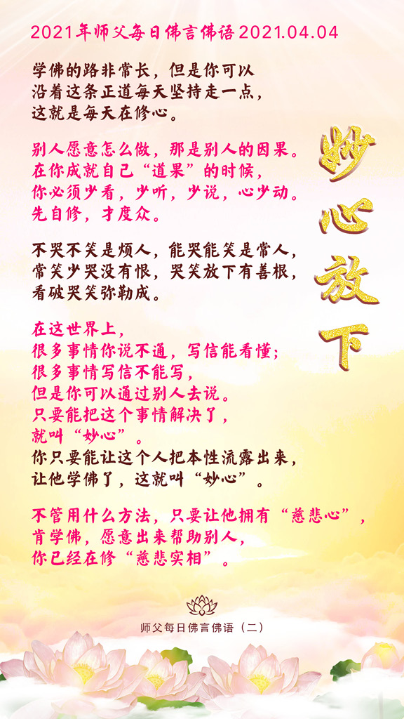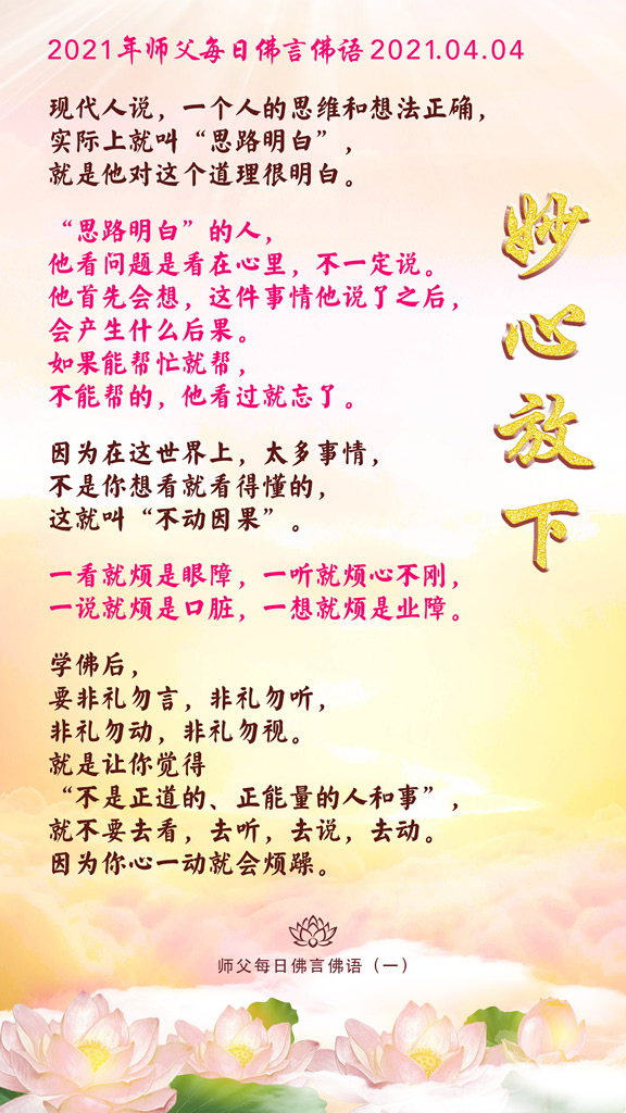 是你的心真的要放下,是你的意念真的要干净,是你的口永远不去造恶业,