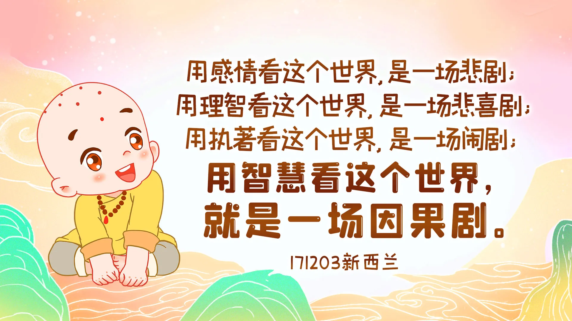 我们小时候经常想不通,现在大了都想通了,師父告诉你们,我们今天还有的烦恼,等到我们五十年之后在哪里?我们小时候十几岁的烦恼,现在又到哪里了?人生苦短,想开想明白,那是智者;人生苦短,能够破迷开悟者,那是智慧。学佛的人,那是有根器的,他们就是跟佛有缘。我们活在人间,靠着缘分在生活。今天,我们不要恨别人,因为我们都是有缘众生。希望大家好好地珍惜善缘,对所有的长辈,要像自己的父母亲一样看待,对于世界上所有的孩子,把他看成自己的孩子一样,这才是佛的境界。尊敬众生,爱护众生,我们才能在众生当中成长,我们才会拥有菩提心啊。