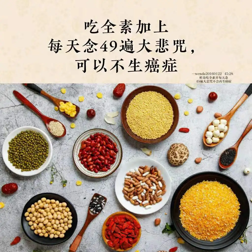 吃全素加上每天念49遍大悲咒,可以不生癌症。