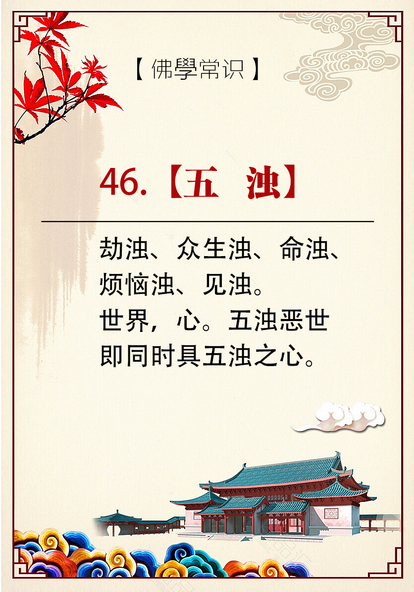 ------劫浊、众生浊、命浊、烦恼浊、见浊。