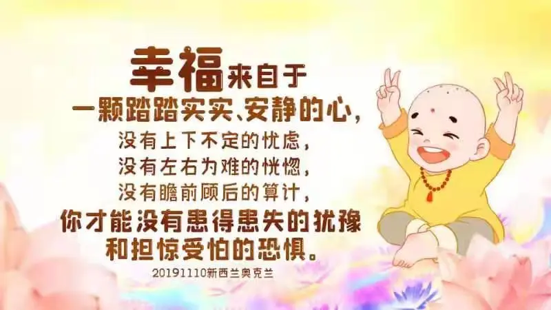師父最后要跟大家说个笑话: 现在的人什么便宜都想占人家的,其实这也是一种贪。一个人走到人家窗户底下,听见一个女的冲他喊:“陛下,陛下……”他一听:不是叫皇上吗?——陛下,这女的叫我陛下、陛下。他就冲着——昂首挺胸地应了一声:“干吗?”话没讲完,一盆脏水泼在了他全身,湿透了。楼上泼水的女人非常委屈地说:“我叫你避一下,避一下,你怎么不知道躲开呢?” 占人家的便宜,最后吃了更多的苦。 所以,我们学佛人要把自己的心变得越来越成熟,把自己的贫困变成富有,心中的富有那胜过我身边利己的富有,使黑暗中的人能够看到光明,使绝境中的人能够看到希望,使梦想能够变成实现,那这就是佛法。