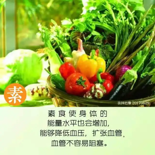 ·素食使身体的能量水平也会增加,能够降低血压,扩张血管,血管不容易阻塞。