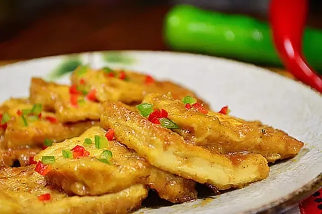 4、至豆腐四面金黄,捞出,趁热浸入卤水;