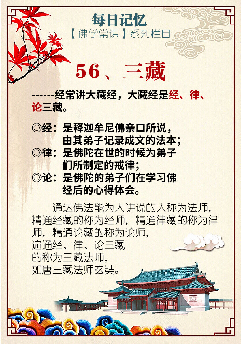 ------经常讲大藏经,大藏经是经、律、论三藏。