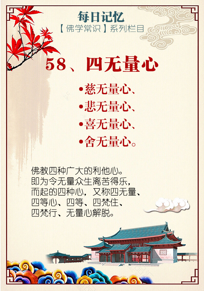 ------慈无量心、悲无量心、喜无量心、舍无量心。