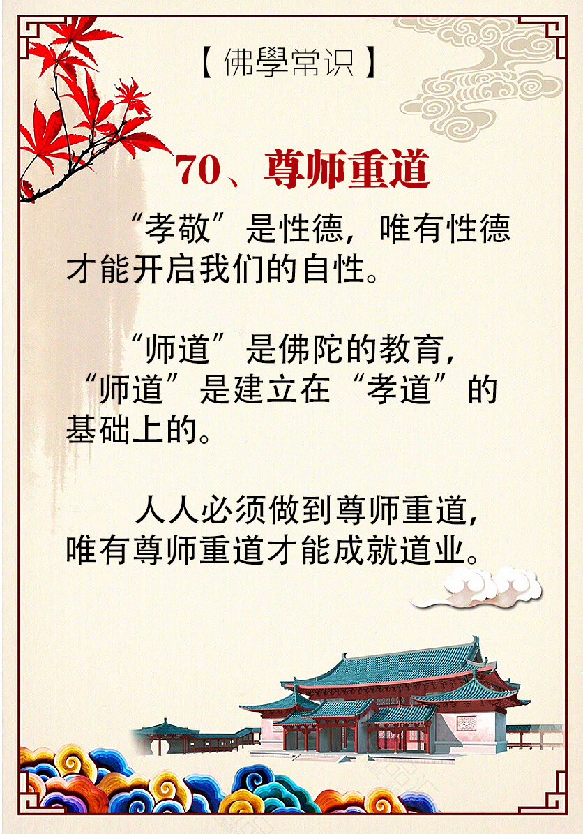 “师道”是佛陀的教育,“师道”是建立在“孝道”的基础上的。人人必须做到尊师重道,唯有尊师重道才能成就道业。