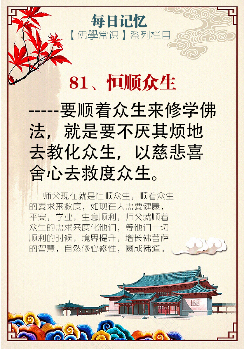 -----要顺着众生来修学佛法,就是要不厌其烦地去教化众生,以慈悲喜舍心去救度众生。