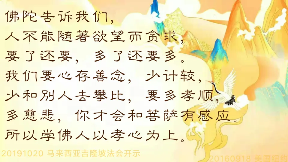 这个故事就是告诉我们,人缺的是一炷孝道之香啊。佛陀告诉我们,人不能随着欲望而贪求,要了还要,多了还要多。我们要心存善念,少计较,少和别人去攀比,要多孝顺,多慈悲,你才会和菩萨有感应。所以学佛人以孝心为上。