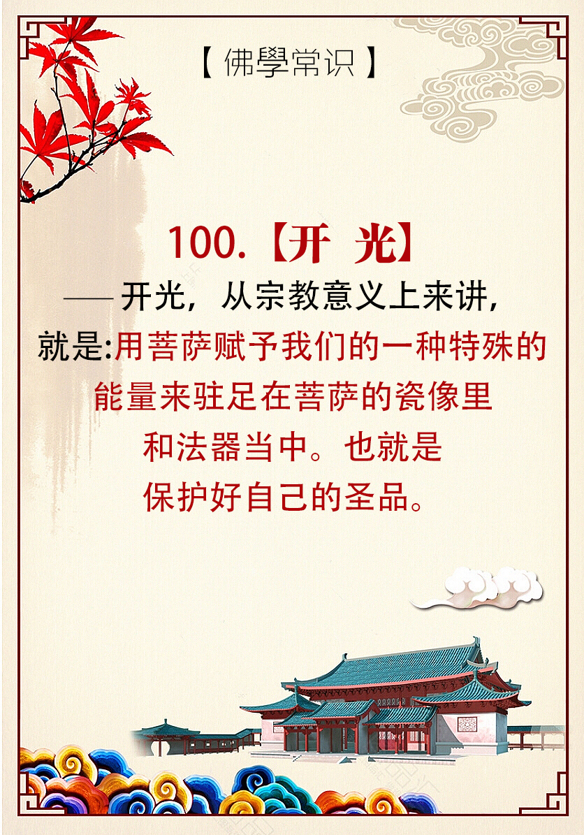 什么叫“开光”?告诉大家,开光,从宗教意义上来讲,就是用菩萨赋予我们的一种特殊的能量来驻足在菩萨的瓷像里和法器当中。也就是保护好自己的圣品。“圣品”是什么?就是神圣的佛像。