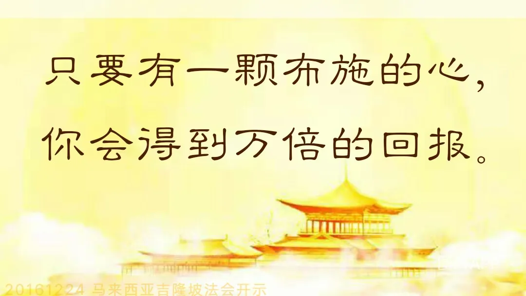 我们培植心中的福气,就是像种下种子一样,就是像收获果实一样。佛陀用了一句话说“犹如尼俱类树那么多”,尼俱类树是印度古时候的一种树,它长得非常的茂盛,它只有一颗核,却可以长出百千万的树叶出来。阿难曾经跪着合掌跟佛陀讲:“种子只有一枚的核粒,渐渐长大之 后,它却能收获数不尽的种子。”佛告诉阿难说:“只要有一颗布施的心,你会得到万倍的回报。”