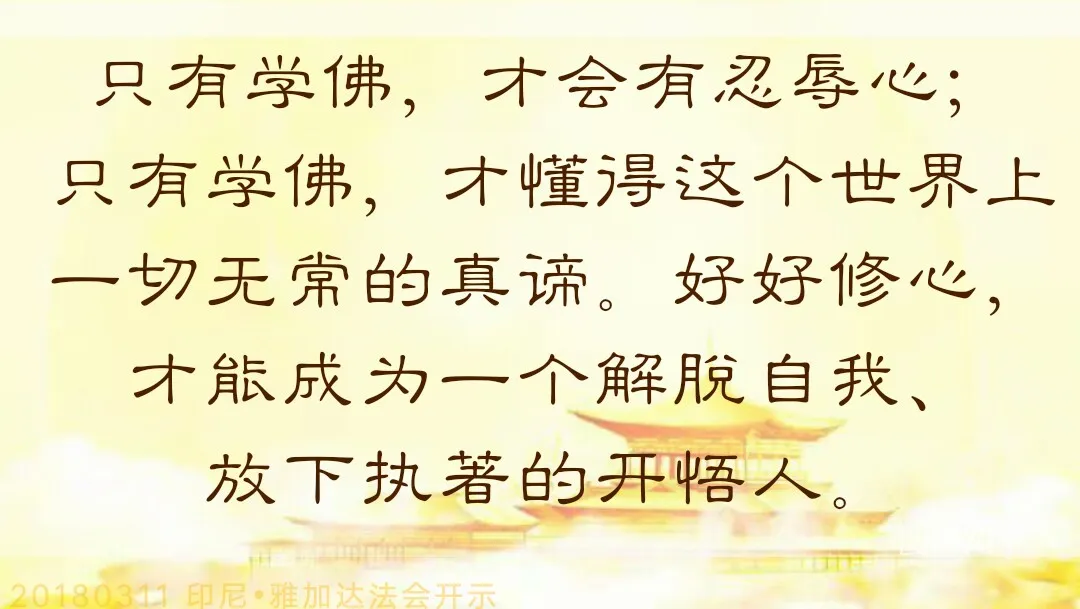只有学佛,才会有忍辱心;只有学佛,才懂得这个世界上一切无常的真谛。好好修心,才能成为一个解脱自我、放下执著的开悟人。