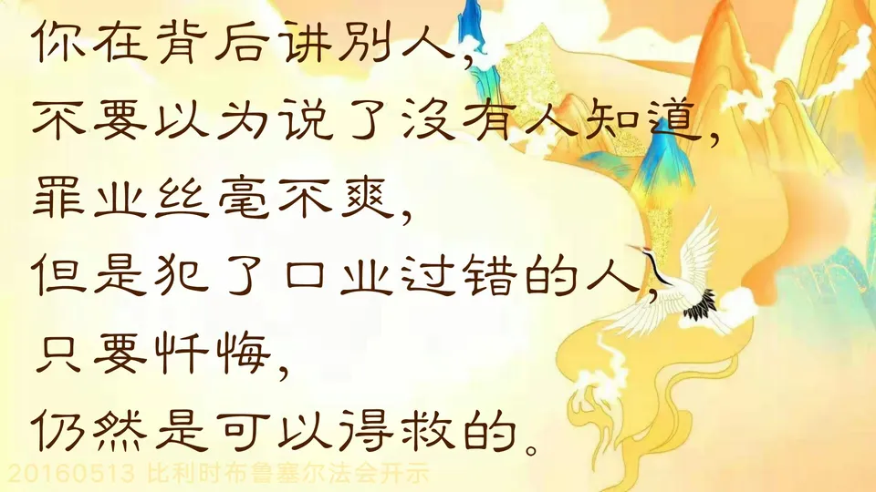这个故事就是告诉我们,你在背后讲别人,不要以为说了没有人知道,罪业丝毫不爽,但是犯了口业过错的人,只要忏悔,仍然是可以得救的。