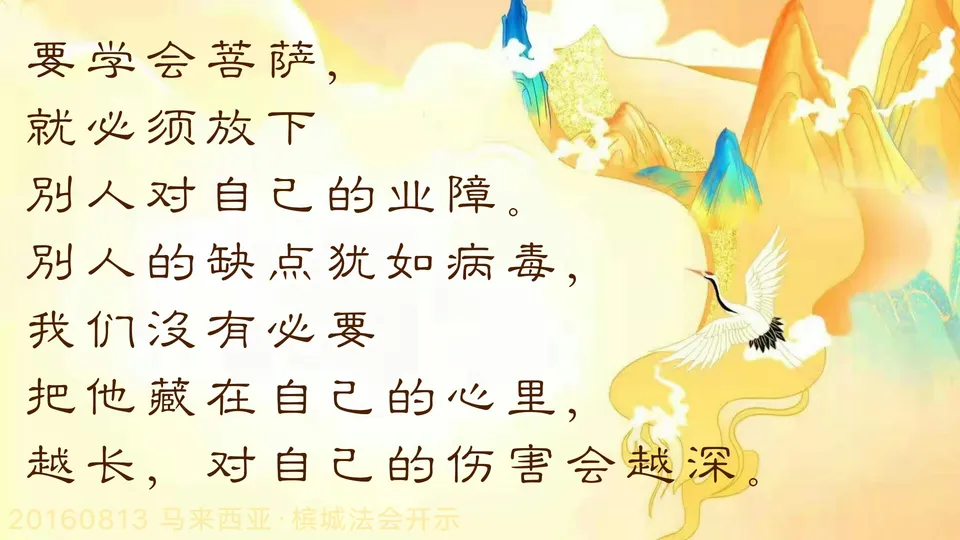 这时候老师开口了,说:“同学们,那就放下这些代表别人犯过错误的石头吧。”孩子们有些惊讶,老师接着说:“学会宽恕别人的过错,不要把它当作宝贝一样的放在自己的身上、扛在肩上、记在心里,时间久了你就会把别人的缺点让你自己沾染上。”这班同学上到了人生最宝贵的一课,袋里装的越多越大的石头,别人的错误就在你心中存留越多,越深的仇恨所造成的心理负担就会太大。为什么人间越烦越恼,越恼越烦,这就叫烦恼;为什么人间越恨越想恨,越恨越放不下,这就是越来越恨,人生就是这样。要学会菩萨,就必须放下别人对自己的业障。别人的缺点犹如病毒,我们没有必要把他藏在自己的心里,越长,对自己的伤害会越深。