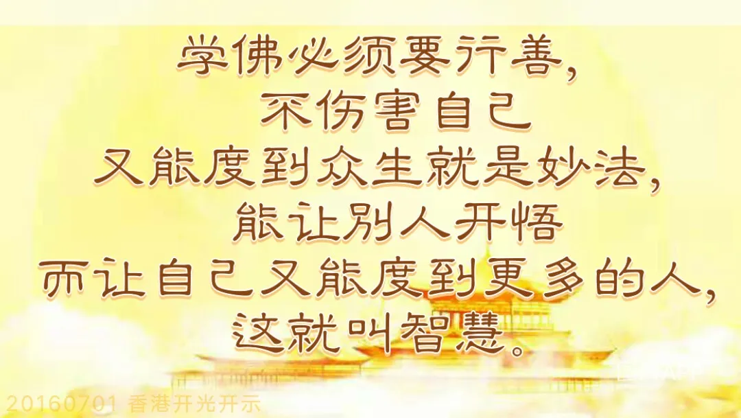 学佛必须要行善,不伤害自己又能度到众生就是妙法,能让别人开悟而让自己又能度到更多的人,这就叫智慧。