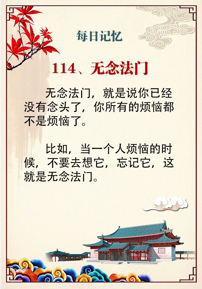比如,当一个人烦恼的时候,不要去想它,忘记它,这就是无念法门。