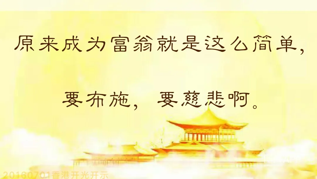 青年人在那座大宅院里住了下来,等老人家回家,没 想到老人家一去不复返,他就成了庄园的主人,过着富裕的生活,这个时候,他才领悟到:“我找了多少年的做富翁的方法,原来成为富翁就是这么简单,要布施,要慈悲啊。”