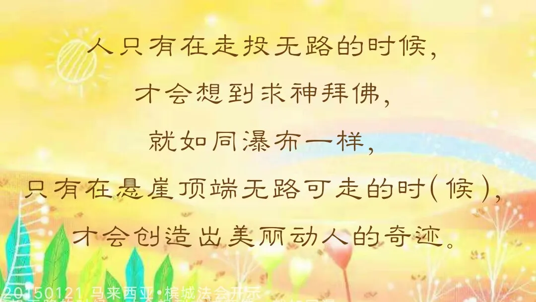 这个故事告诉大家什么道理? 实际上,命运是掌握在你们手上的。很多人说为什么他有钱,我没钱,因为人家在努力工作;为什么他身体好,我身体不好,你去看看早上起来锻炼的人,你还在睡懒觉,人家已经在跑步了。看看西人说,身体非常好,看看西人在走步机上,在机器上不停地走路,人家在付出, 看看人家为什么求得灵,他求得不灵,人家早上 5 点钟起来念经、烧香,你们烧了吗?