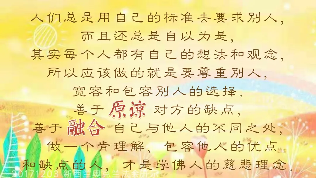 这个故事告诉我们,人们总是用自己的标准去要求别人,而且还总是自以为是,其实每个人都有自己的想法和观念,所以应该做的就是要尊重别人,宽容和包容别人的选择。善于原谅对方的缺点,善于融合自己与他人的不同之处,做一个肯理解、包容他人的优点和缺点的人,才是学佛人的慈悲理念。