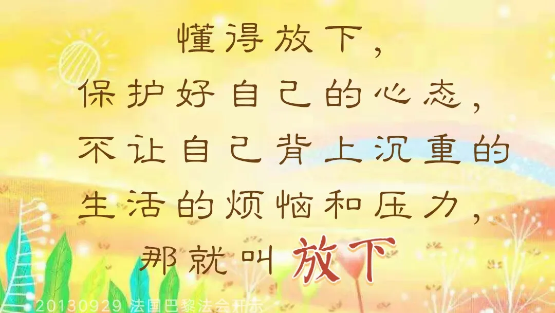 现在社会中, 很多人做过局长,做过领导,很多人在这个社会上得到过名,你现在老了,你退下了,你就要把这些名利放下,如果你还用自己是非常伟大的这种心态生活在这个世界上,你将会很累,你拥有的很快就会失去,所以,懂得放下,保护好自己的心态,不让自己背上沉重的生活的烦恼和压力,那就叫放下。