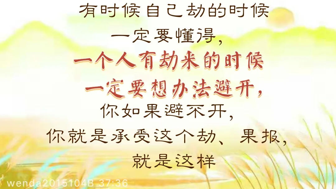 台长答:以求本命年平安,是这样的。比方说这次你去看看踩踏事件,是36个人死了,后面的应该不会有太大的问题了,但是这个“36”你知道吗?这就是一个大劫啊(哦)所以你去看,世界上很多的事情并不是巧合的,它是有规矩有规定的,所以有些事情你只能明白这些道理,你只能去做,有时候自己劫的时候一定要懂得,一个人有劫来的时候一定要想办法避开,你如果避不开,你就是承受这个劫、果报,就是这样(明白了)