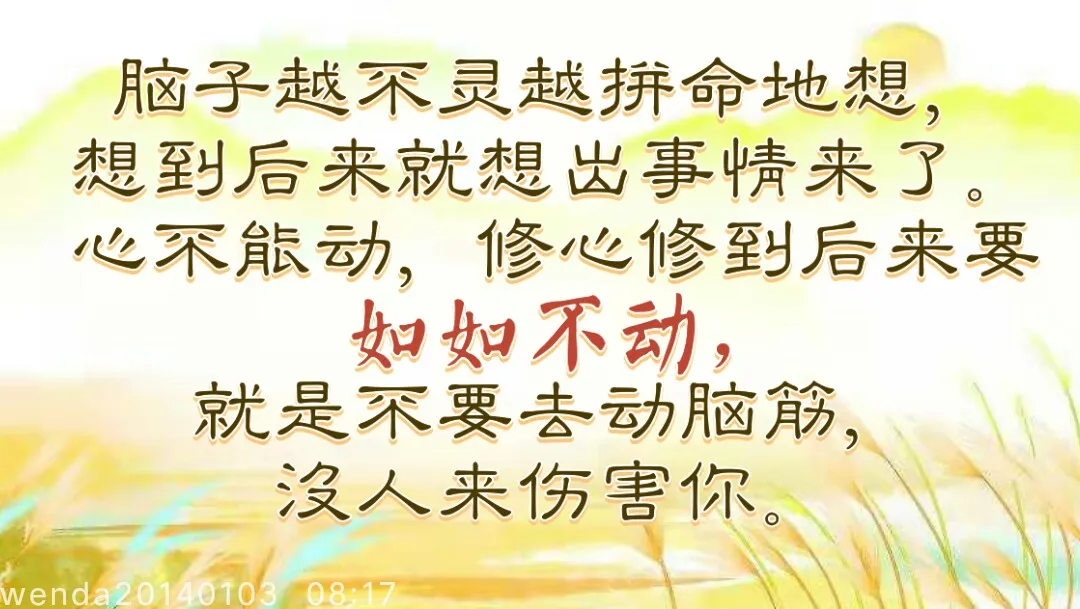 修心到后来要如如不动,不要去动坏脑筋,没人来伤害你