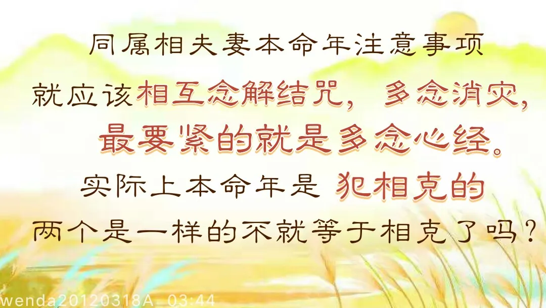 台长答:龙是飘忽不定的,在龙年做很多事情都不一定能成功。如果两个人都是属龙的,就应该相互念解结咒,多念消灾,最要紧的就是多念心经。实际上本命年是犯相克的两个是一样的不就等于相克了吗?举个简单例子:你一个人很清静的在家里,那么两个人住在一家,不是开始有嫉妒了吗?烦恼出来了嘛,因为两个人生活背景不一样,有时候就会产生烦恼(人越多事情越多?)对啊,就是这个道理,所以就产生一种相克了(明白)