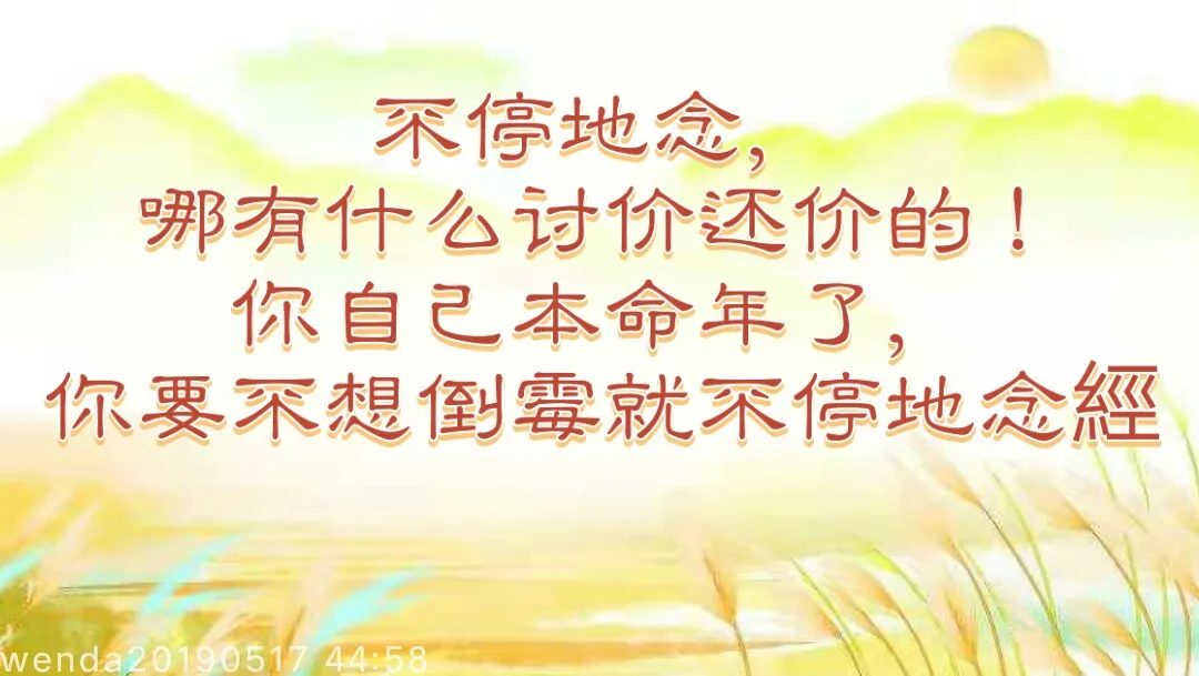 薹長答:还是这样啊,过生日之前念,根据自己的年龄多少(那他同时也犯太岁,他每个月还要念27张吗?)对啊(是这两个加起来吗?还是……)对(生日前后各念36张,然后每个月还要再念27张?)对啊,不停地念,哪有什么讨价还价的!你自己本命年了,你要不想倒霉就不停地念經(明白了)没智慧,还跟人家讨价还价?(谢谢師父)