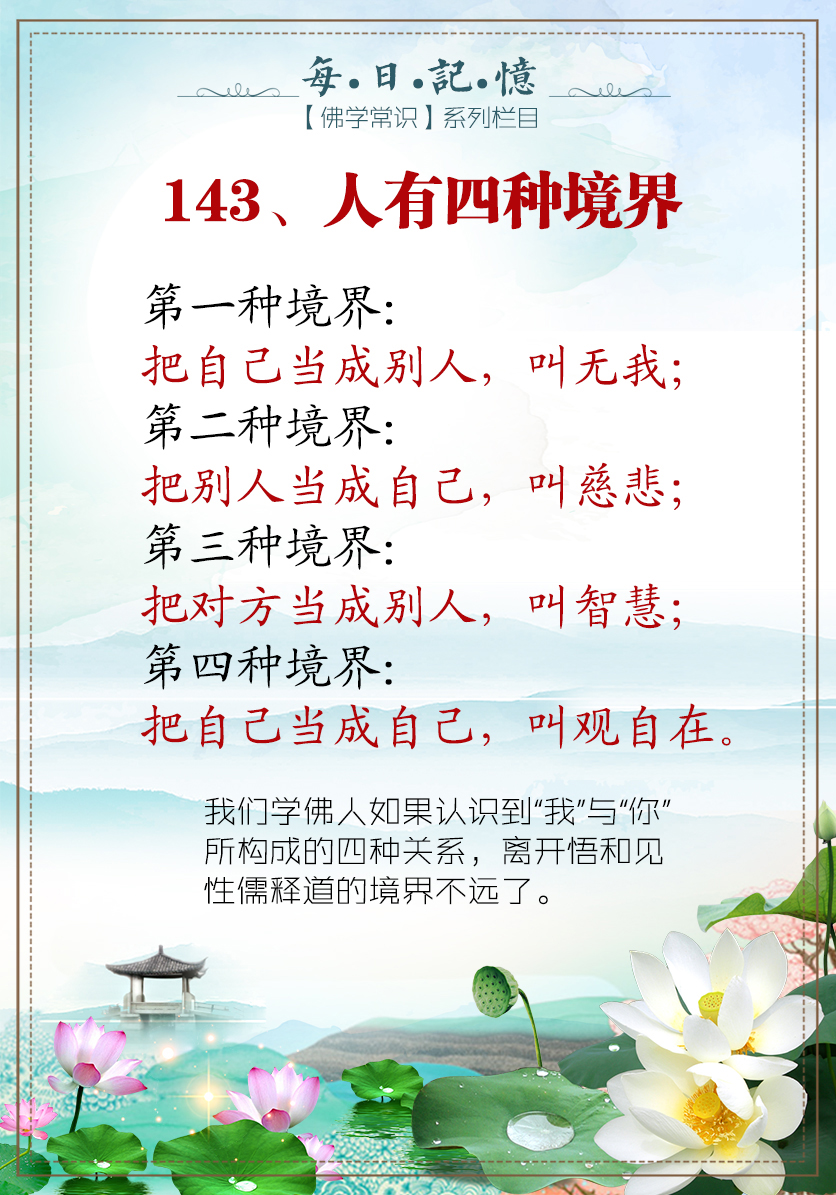 我们学佛人如果认识到“我”与“你”所构成的四种关系,离开悟和见性儒释道的境界不远了。