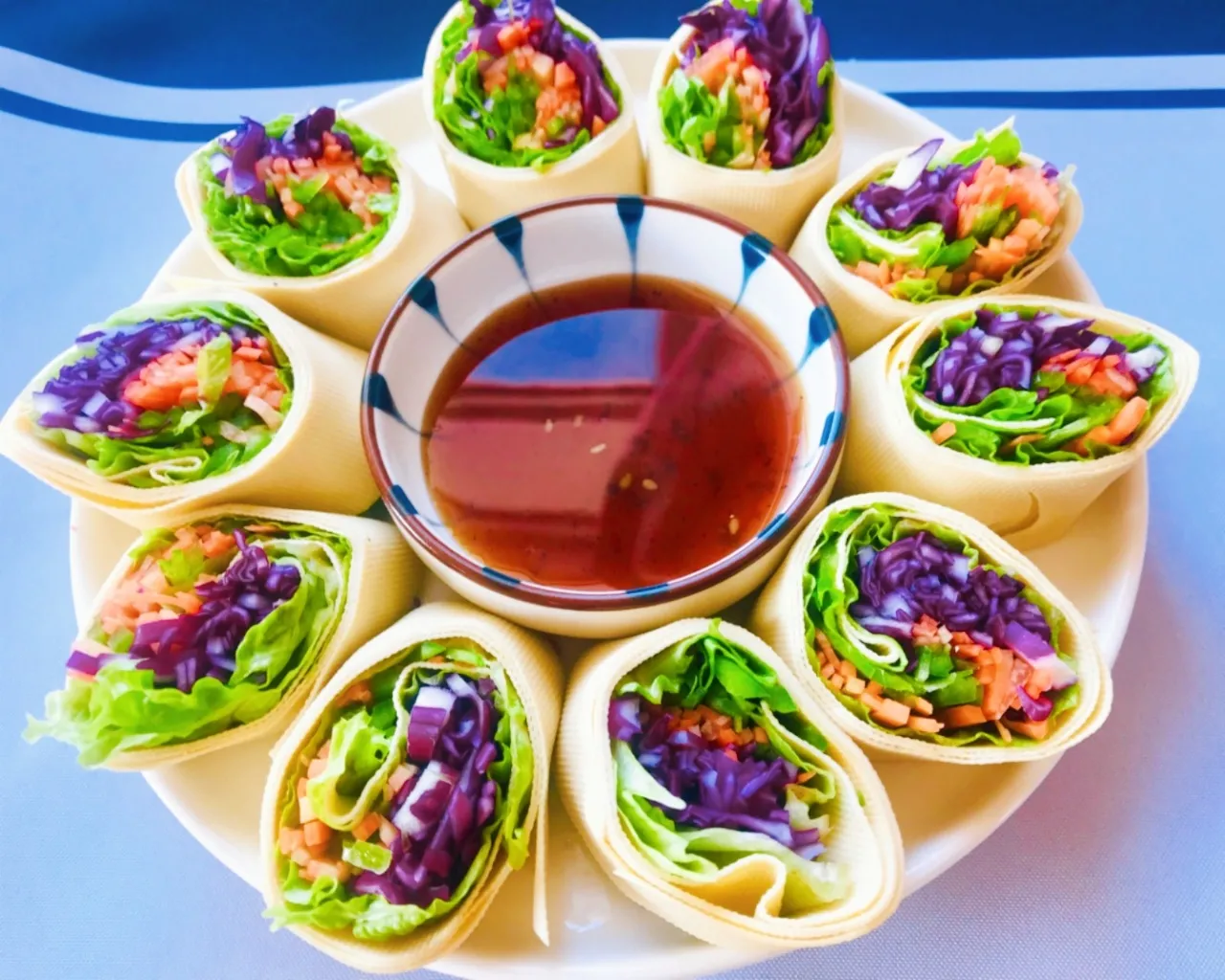 豆皮,甘蓝丝、胡萝卜丝、生菜丝