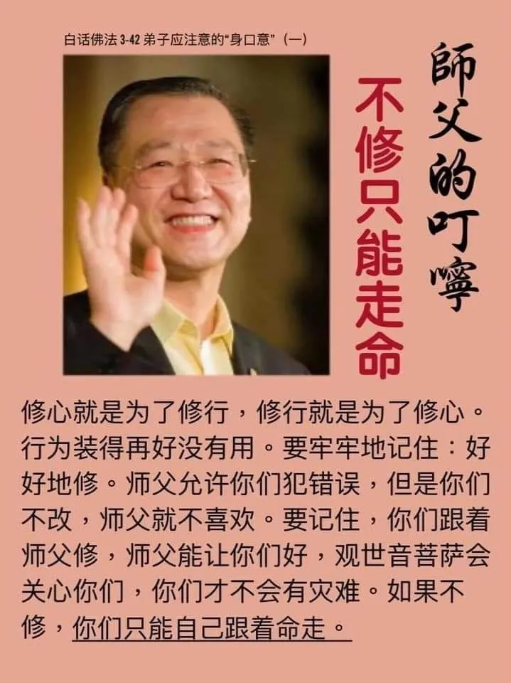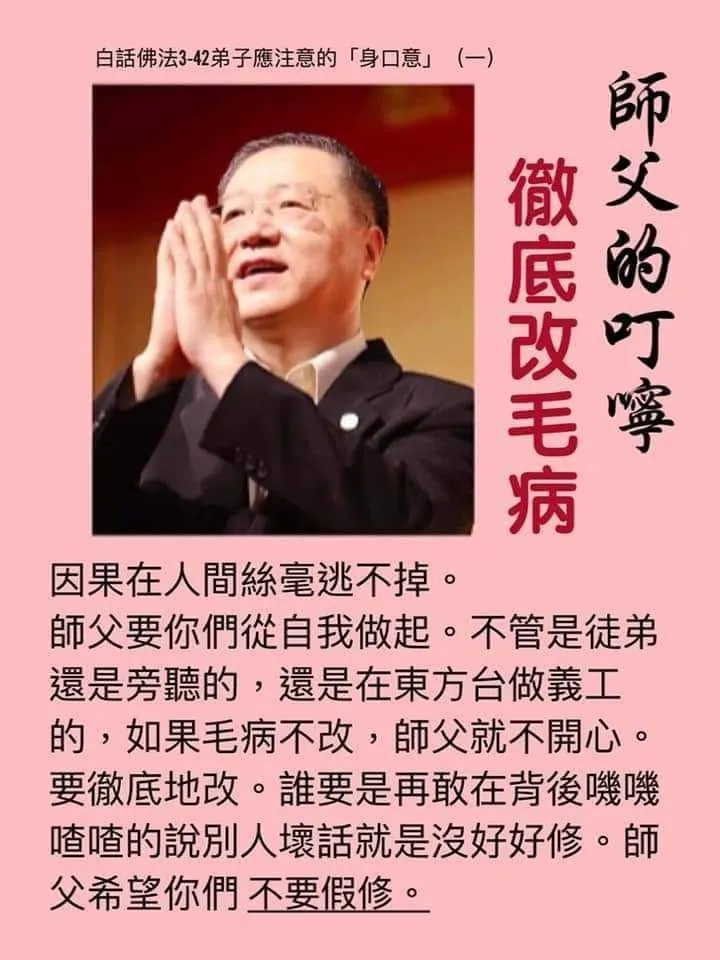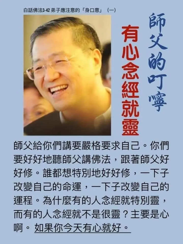 所以希望你们好好努力,一定要战胜自己,战胜身上的疾病,战胜自己身上的毛病,要坚强。有时候不一定要师 父跟你们在我边上讲太多,你们多看看师 父的《白話佛灋》,你们多看看经文,多念念经,跟大家在一起,相互帮助,你们一定会超出六道的。师 父相信你们!