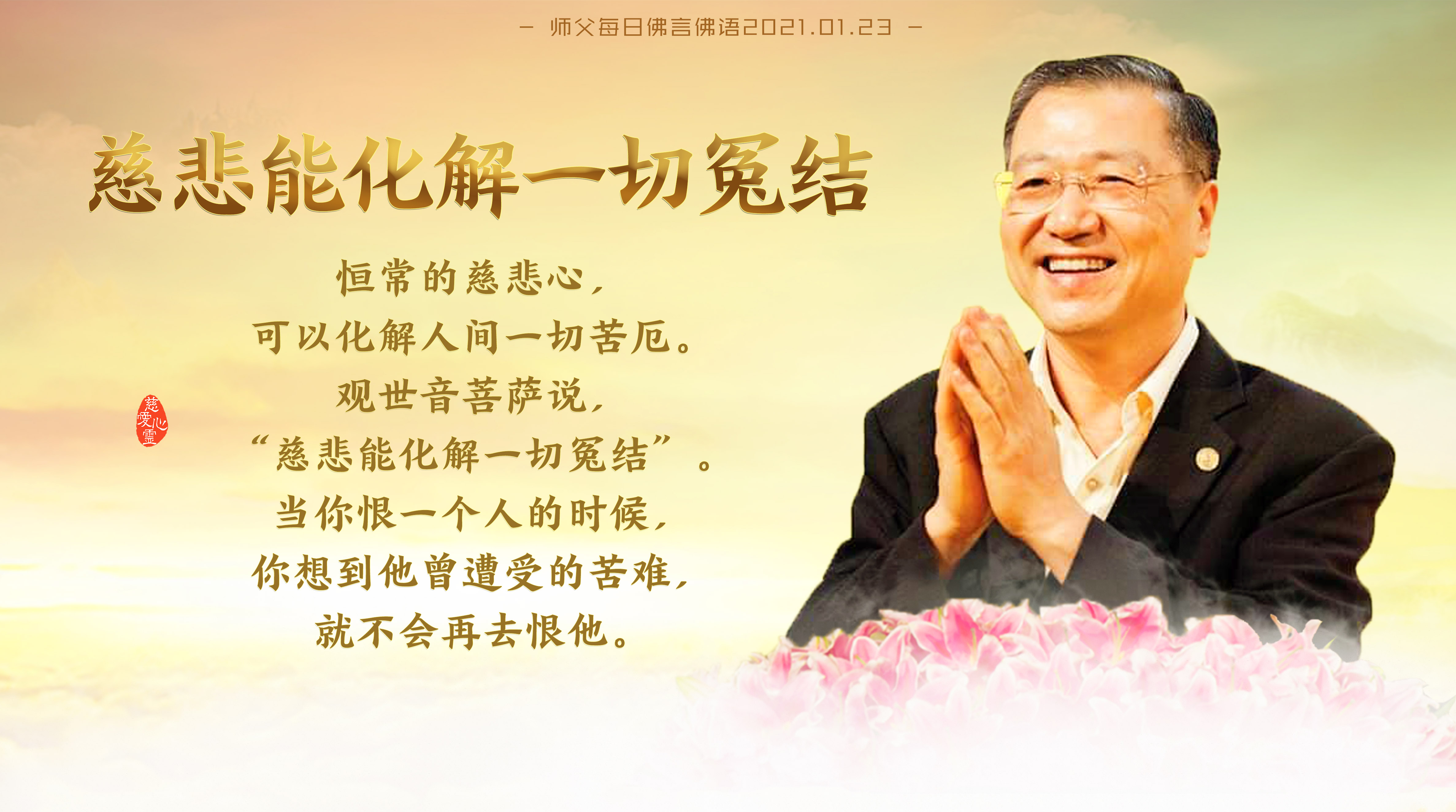 恒常的慈悲心,可以化解人间一切苦厄。观世音菩萨说,“慈悲能化解一切冤结”。当你恨一个人的时候,你想到他曾遭受的苦难,就不会再去恨他。理解生命,极其有限;珍惜人生,修出六道。人要学会断除常见,消除断见,要观身无常;学会看重自己的本性,看轻自己的人性。破色身无常,看破人身;破假身无常,看破色身;打破贪爱执著,清净随缘解脱。杂心安住,随顺因缘; 少欲知足,常生感恩。