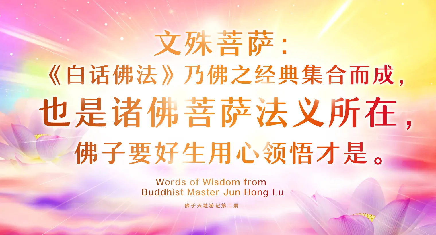 当阿弥陀佛为转轮圣王的时候,转轮圣王是他的一个称号佛号“阿弥陀佛”。在过去还没有成为阿弥陀佛之前,他叫转轮圣王的时候。观世音菩萨就是转轮圣王的一个太子,第一太子。我们都没听到过吧?是阿弥陀佛的太子。这都是有因缘的。大家听得懂吗?所以名字就叫不眴。眴就是目字旁,一个询问的询换了个目字边旁。那么当宝藏如来为转轮圣王授记之后。也就是说当宝藏如来,实际上是天上更高的一位大菩萨。等于用现代话讲,给阿弥陀佛授记了。那么不眴太子上前就禀告佛陀说,实际上就跟佛祖讲,说什么呢?这是观世音菩萨的愿力,大家听好了,他说“世尊,今天我以广大应声”,广大应声什么意思呢?就是我今天所有的,我以所有的人的声音,只要我听到这个音声,“告知一切众生。”只要你们听得到的,我就告诉你们。实际上就是愿力的所为这是开始!告诉你们什么呢?观音菩萨所具有的种种善根。大家听得懂吗?就是观世音菩萨已经很善良了,他种种的善根。菩萨说,全都回向阿耨多罗三藐三菩提。“阿耨多罗三藐三菩提”大家知道在《心经》里面有的,你们天天会念,但是你们不知道什么意思,就是求证于无上正等正觉。大家听得懂吗?无上正等正觉什么意思?无上就是没有顶的,叫“无上”,“正等”呢?完全是正法。所以有一个叫正法如来。正等正觉是什么?完全是正的觉悟,我得到的这个东西,这个就是无上最高的,就是完全开悟了。