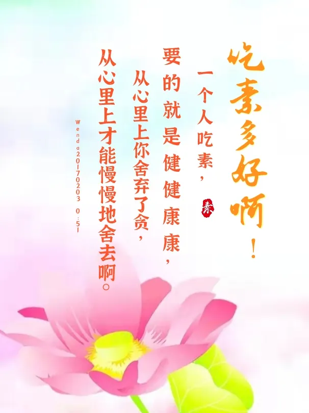 吃素多好啊,一个人吃素要的就是健健康康,从心里上你舍弃了贪,从心里上才能慢慢地舍去啊。