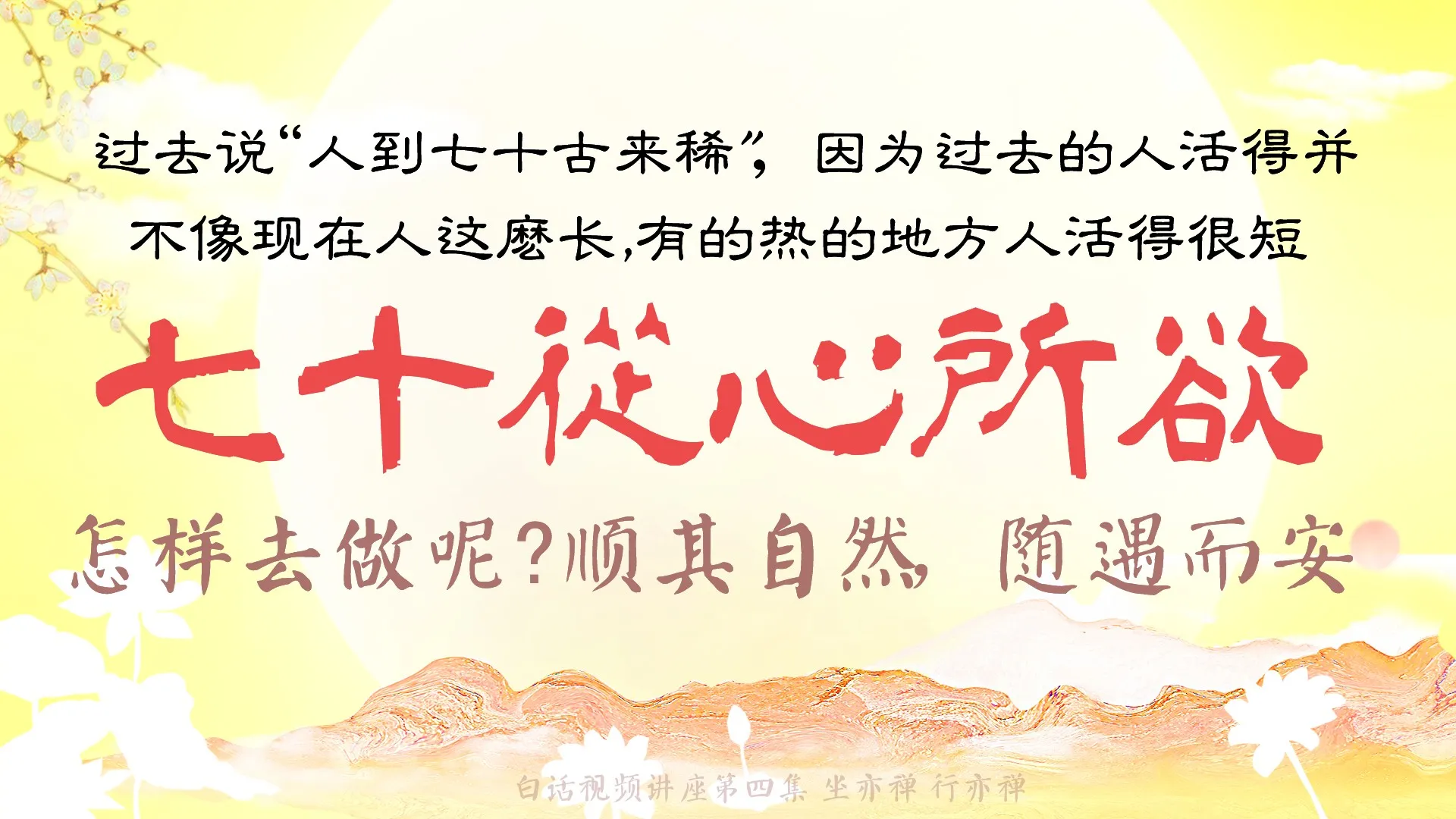 过去说“人到七十古来稀”,因为过去的人活得并不像现在人这么长,有的热的地方人活得很短。七十从心所欲,怎样去做呢?顺其自然,随遇而安。