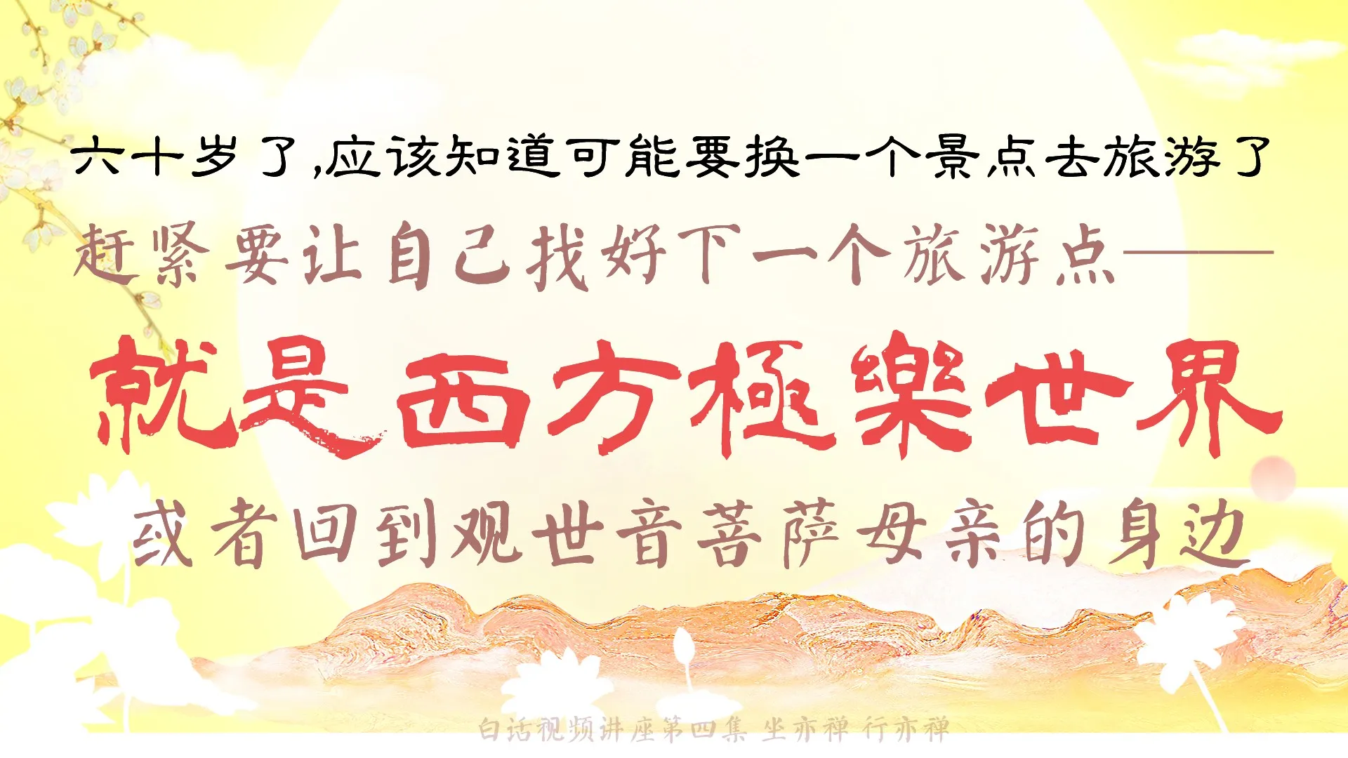 六十岁了,应该知道可能要换一个景点去旅游了,赶紧要让自己找好下一个旅游点——就是西方极乐世界,或者回到观世音菩萨母亲的身边。