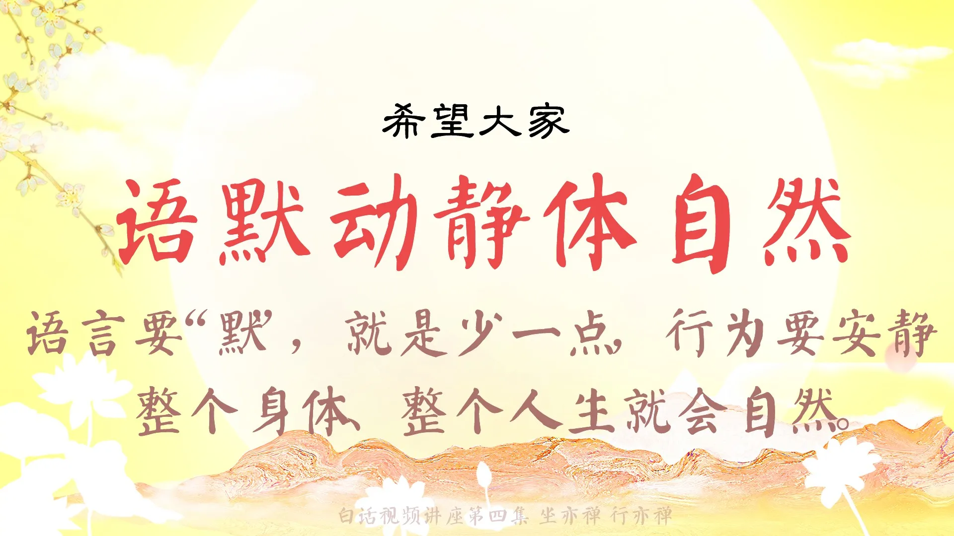 希望大家“语默动静体自然”,语言要“默”,就是少一点,行为要安静,整个身体、整个人生就会自然。