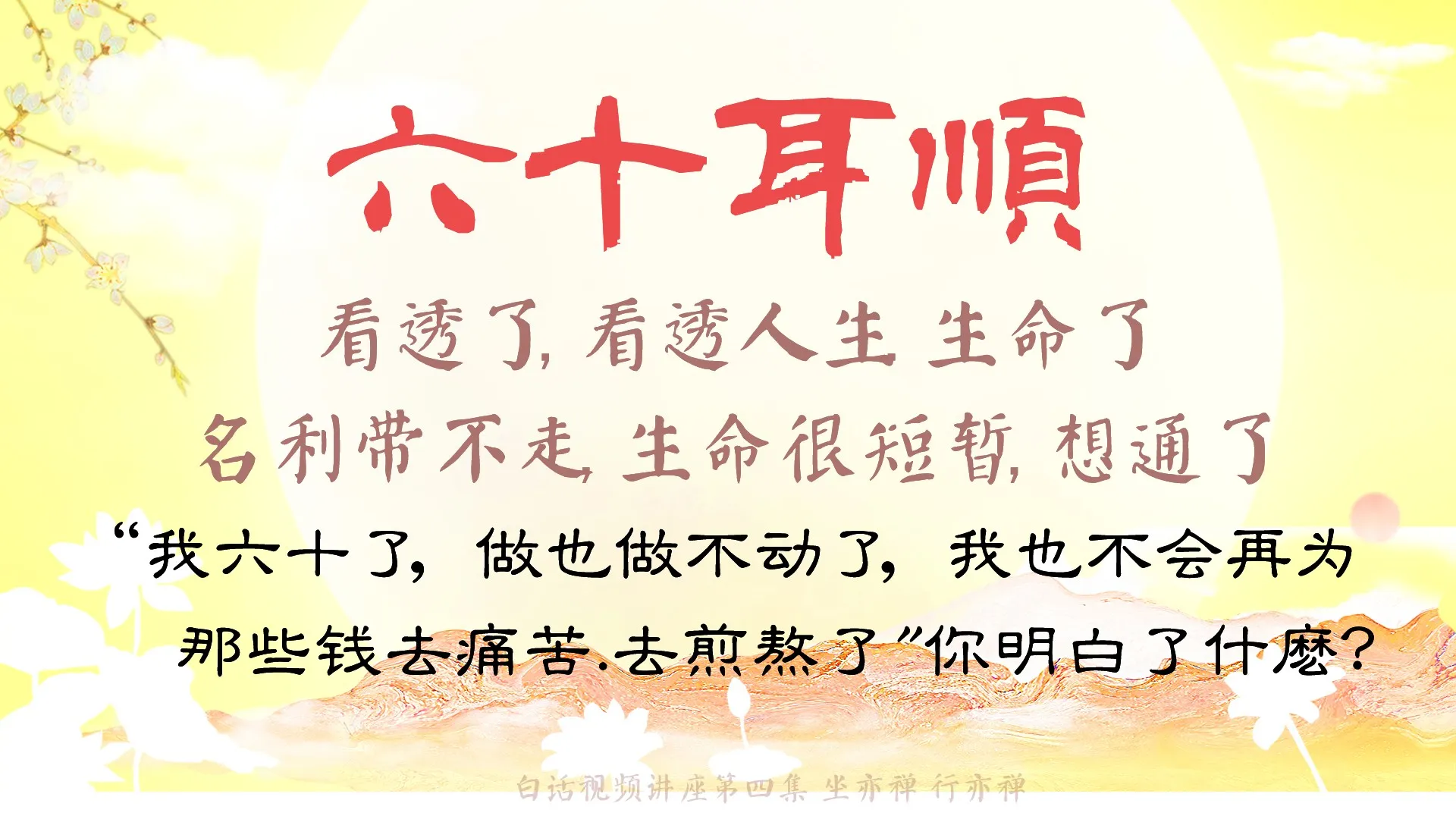 过去讲“六十耳顺”。看透了,看透人生、生命了,名利带不走,生命很短暂。想通了,“我六十了,做也做不动了,我也不会再为那些钱去痛苦、去煎熬了”。你明白了什么?