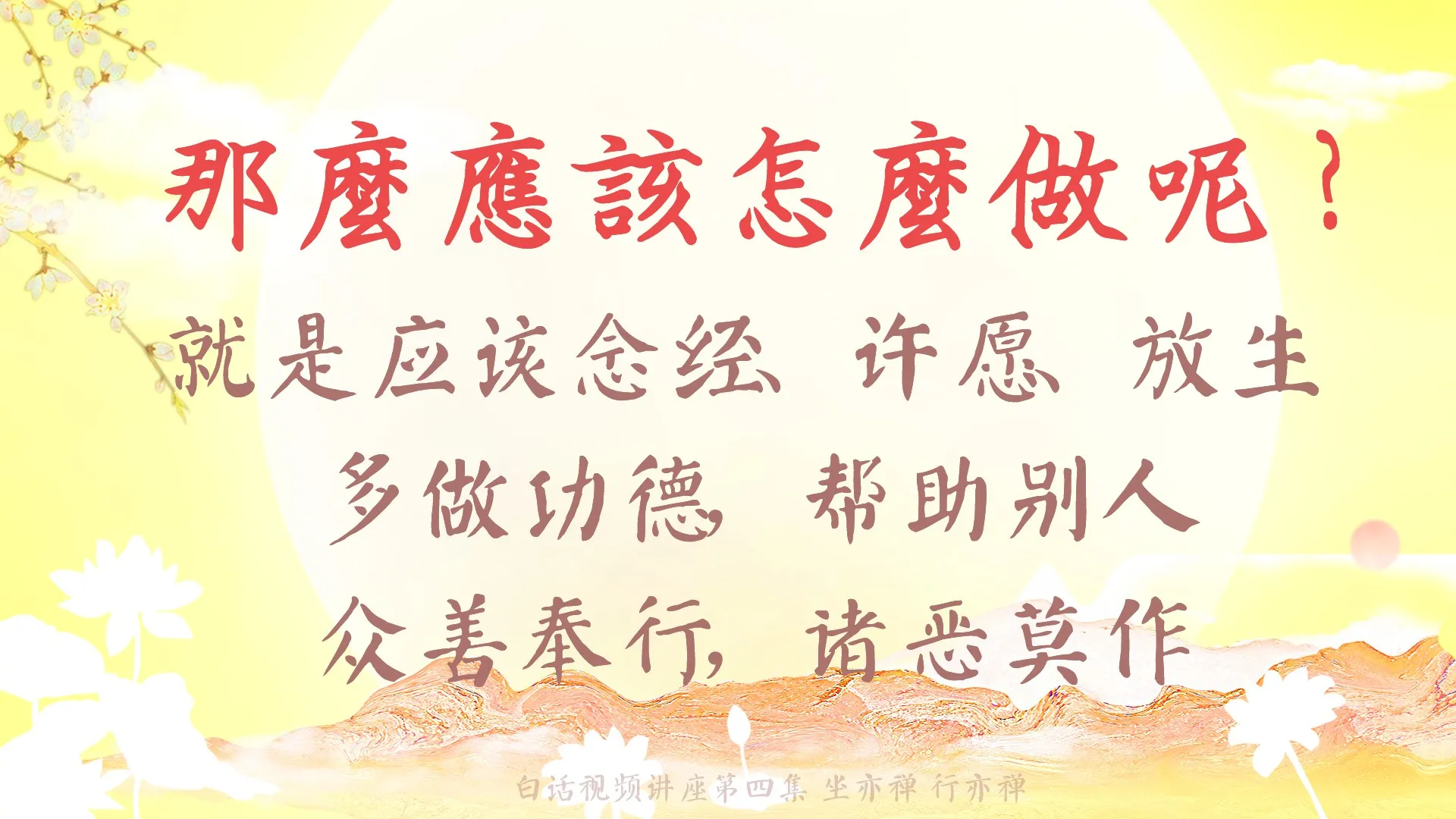 那么应该怎么做呢?就是应该念经、许愿、放生,多做功德,帮助别人,众善奉行,诸恶莫作。
