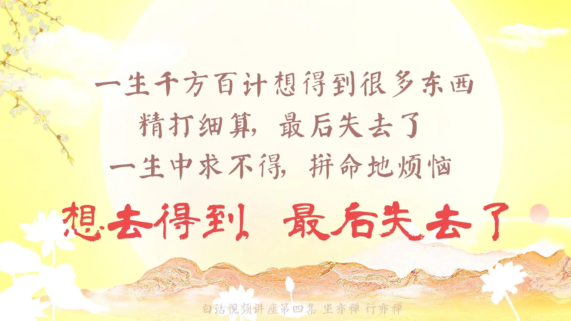 一生千方百计想得到很多东西,精打细算,最后失去了。一生中求不得,拼命地烦恼,想去得到,最后失去了。