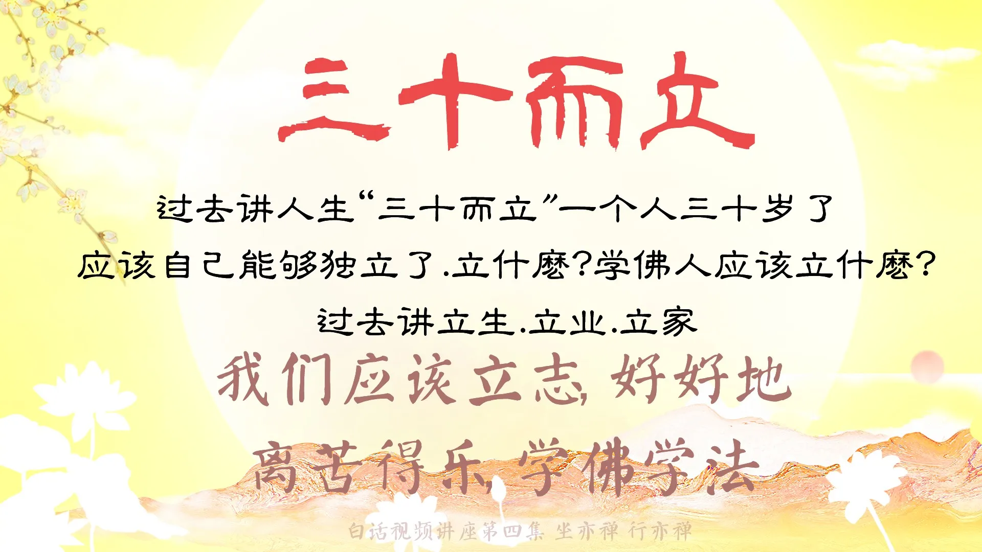 过去讲人生“三十而立”,一个人三十岁了,应该自己能够独立了。立什么?学佛人应该立什么?过去讲立生、立业、立家,我们应该立志,好好地离苦得乐,学佛学法。