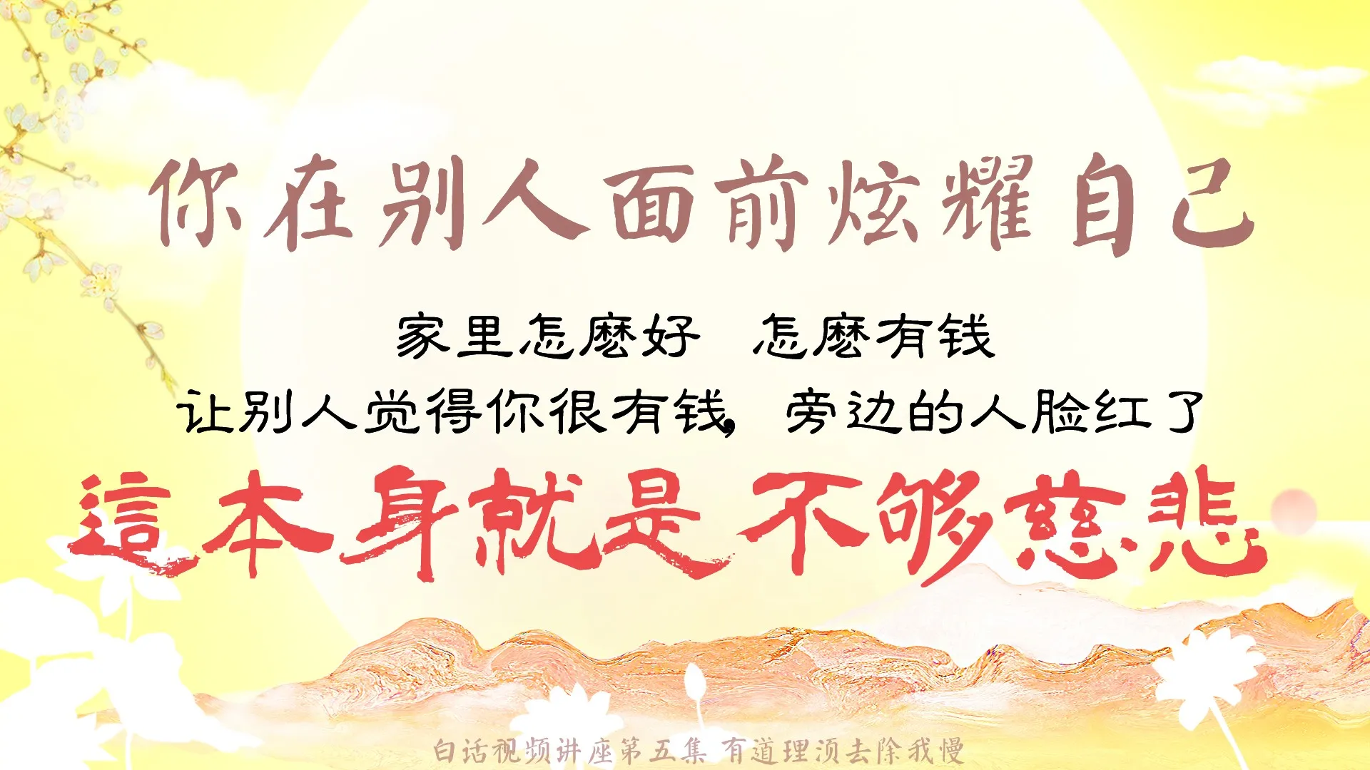 你在别人面前炫耀自己,家里怎么好、怎么有钱,让别人觉得你很有钱,旁边的人脸红了,这本身就是不够慈悲。