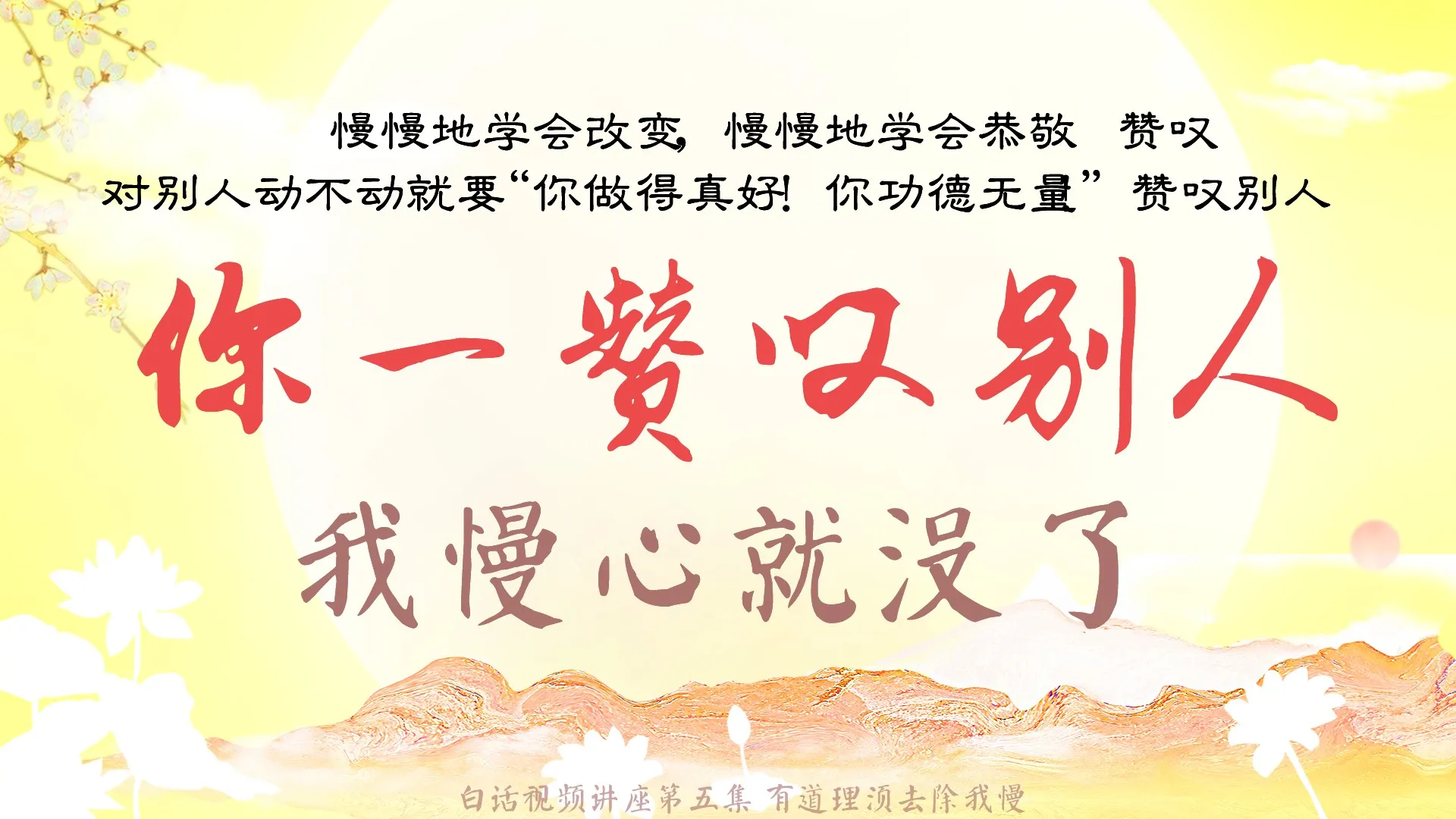 慢慢地学会改变,慢慢地学会恭敬、赞叹,对别人动不动就要“你做得真好!你功德无量!”赞叹别人。你一赞叹别人,我慢心就没了。