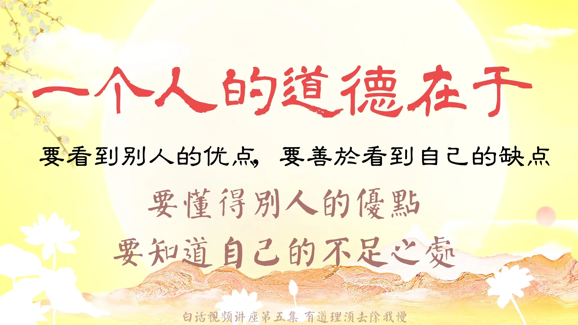 一个人的道德在于:要看到别人的优点,要善于看到自己的缺点;要懂得别人的优点,要知道自己的不足之处。
