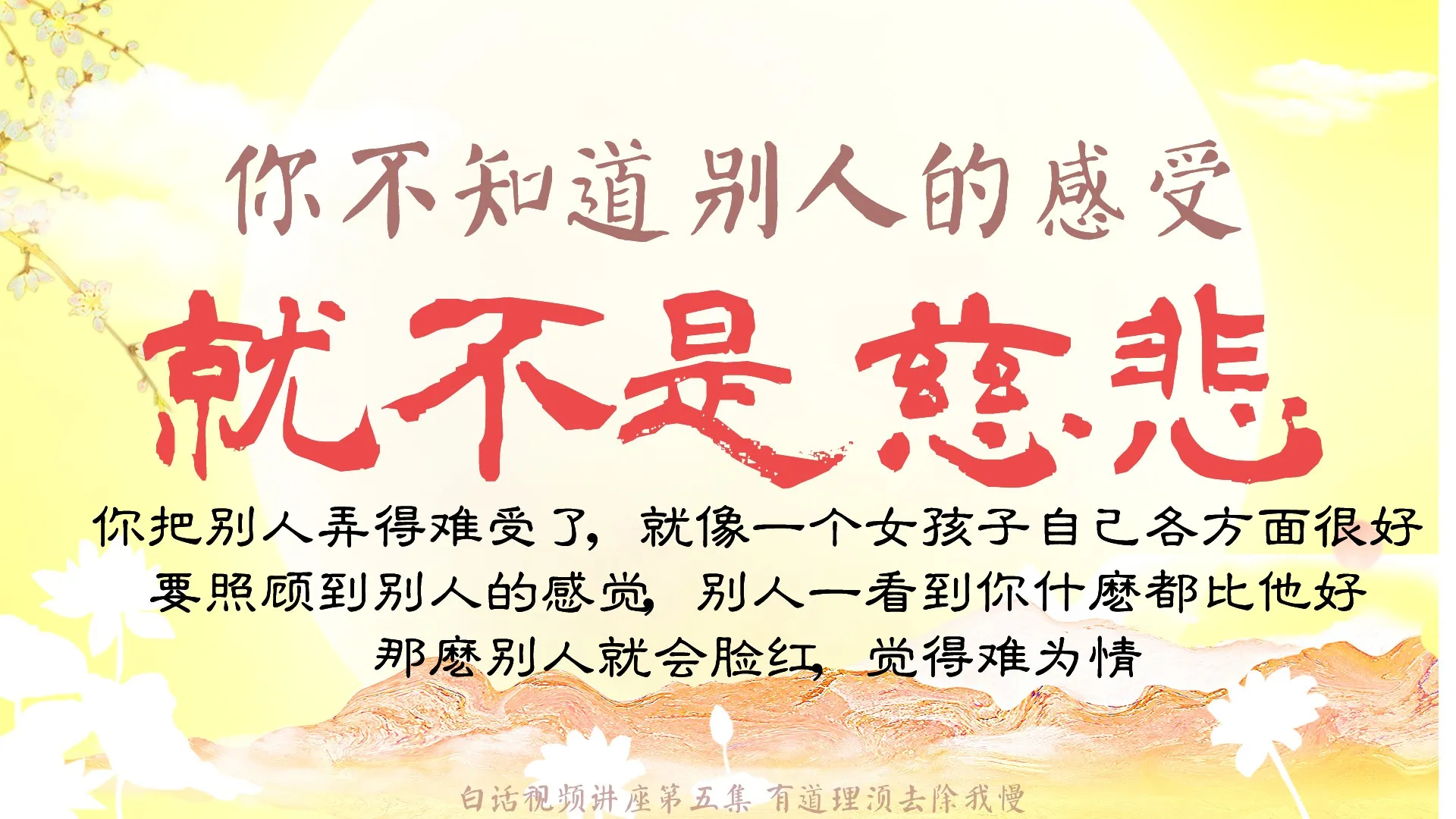 你不知道别人的感受,就不是慈悲。你把别人弄得难受了,就像一个女孩子自己各方面很好,要照顾到别人的感觉,别人一看到你什么都比他好,那么别人就会脸红,觉得难为情。