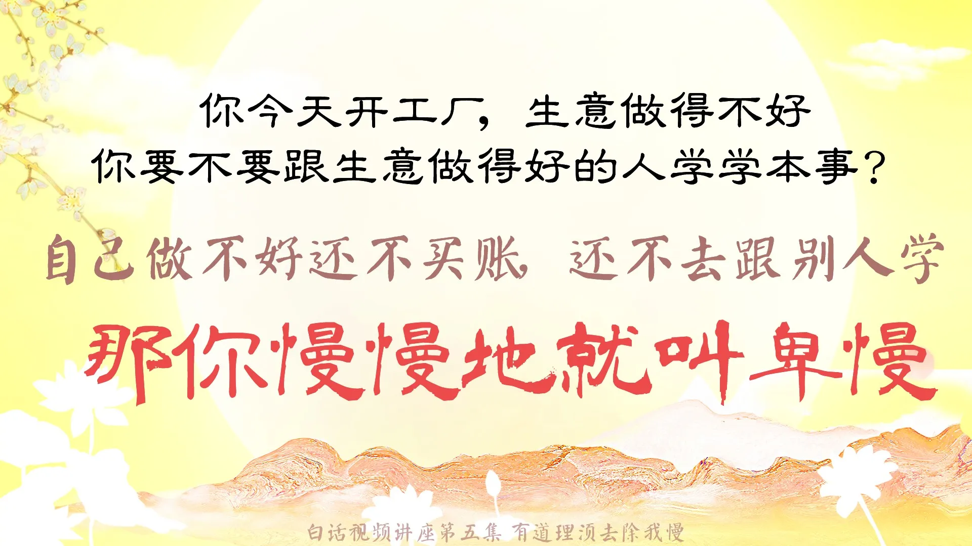 你今天开工厂,生意做得不好,你要不要跟生意做得好的人学学本事?自己做不好还不买账,还不去跟别人学,那你慢慢地就叫卑慢。