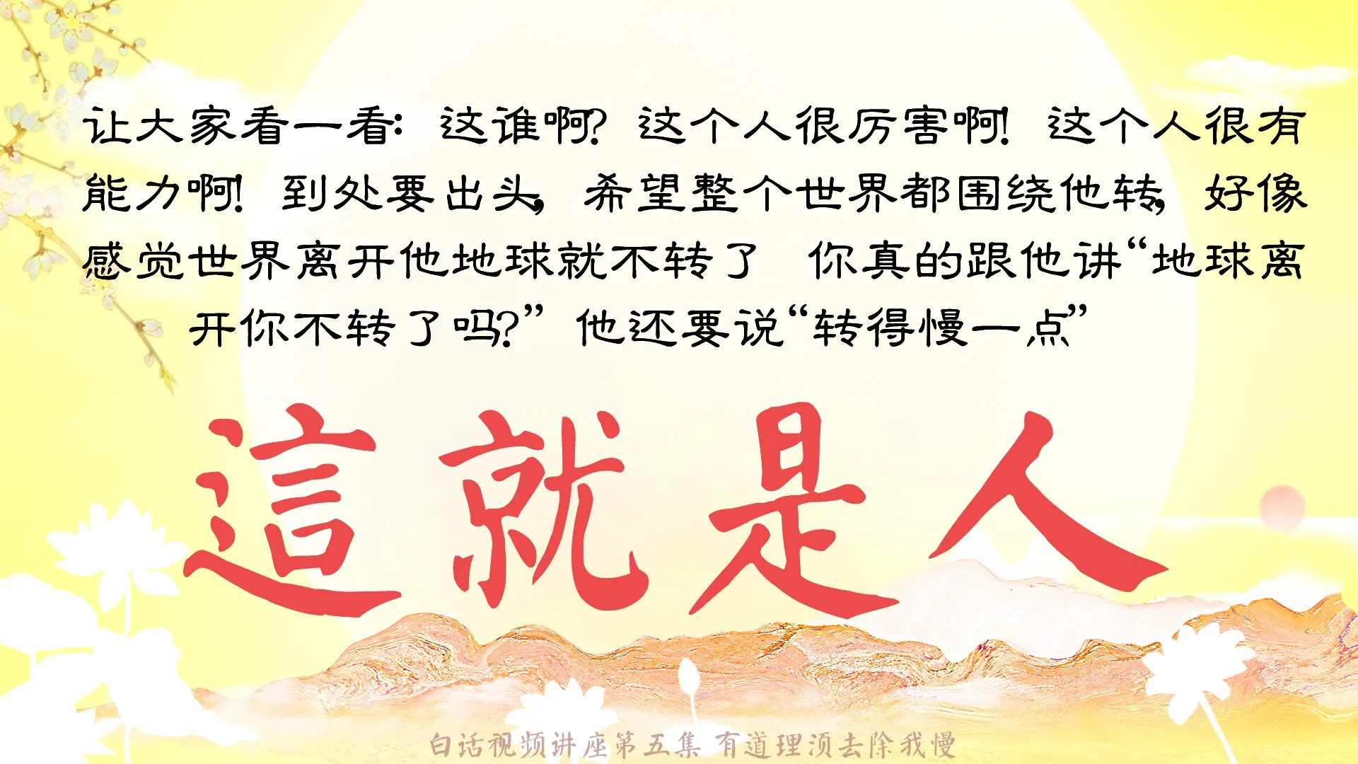 让大家看一看:这谁啊?这个人很厉害啊!这个人很有能力啊!到处要出头,希望整个世界都围绕他转,好像感觉世界离开他地球就不转了。你真的跟他讲“地球离开你不转了吗?”他还要说“转得慢一点”。这就是人。