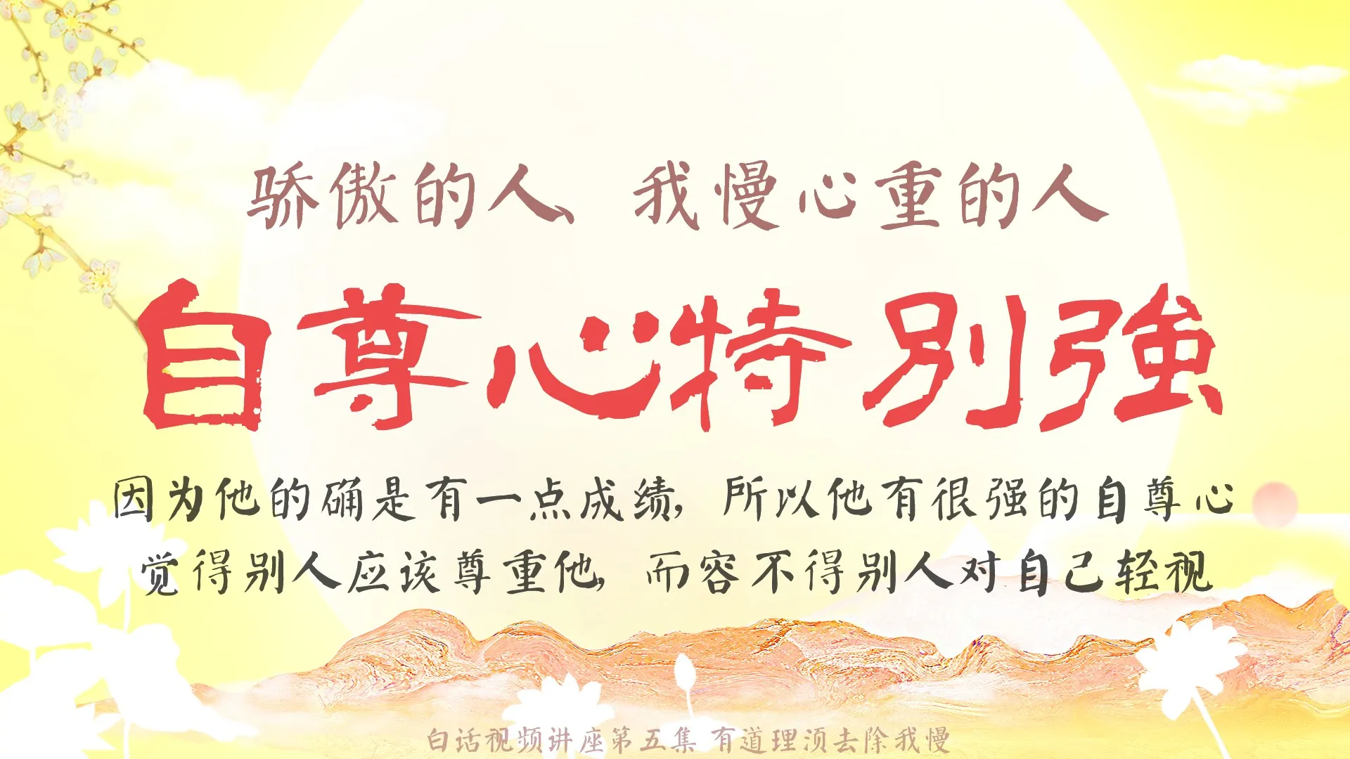 骄傲的人、我慢心重的人自尊心特别强,因为他的确是有一点成绩,所以他有很强的自尊心,觉得别人应该尊重他,而容不得别人对自己轻视。