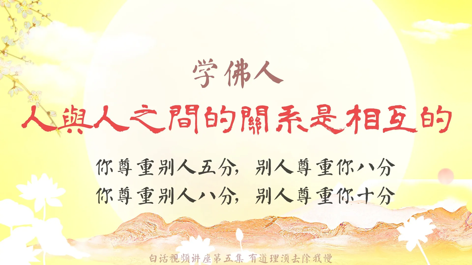 学佛人,人与人之间的关系是相互的。你尊重别人五分,别人尊重你八分;你尊重别人八分,别人尊重你十分。