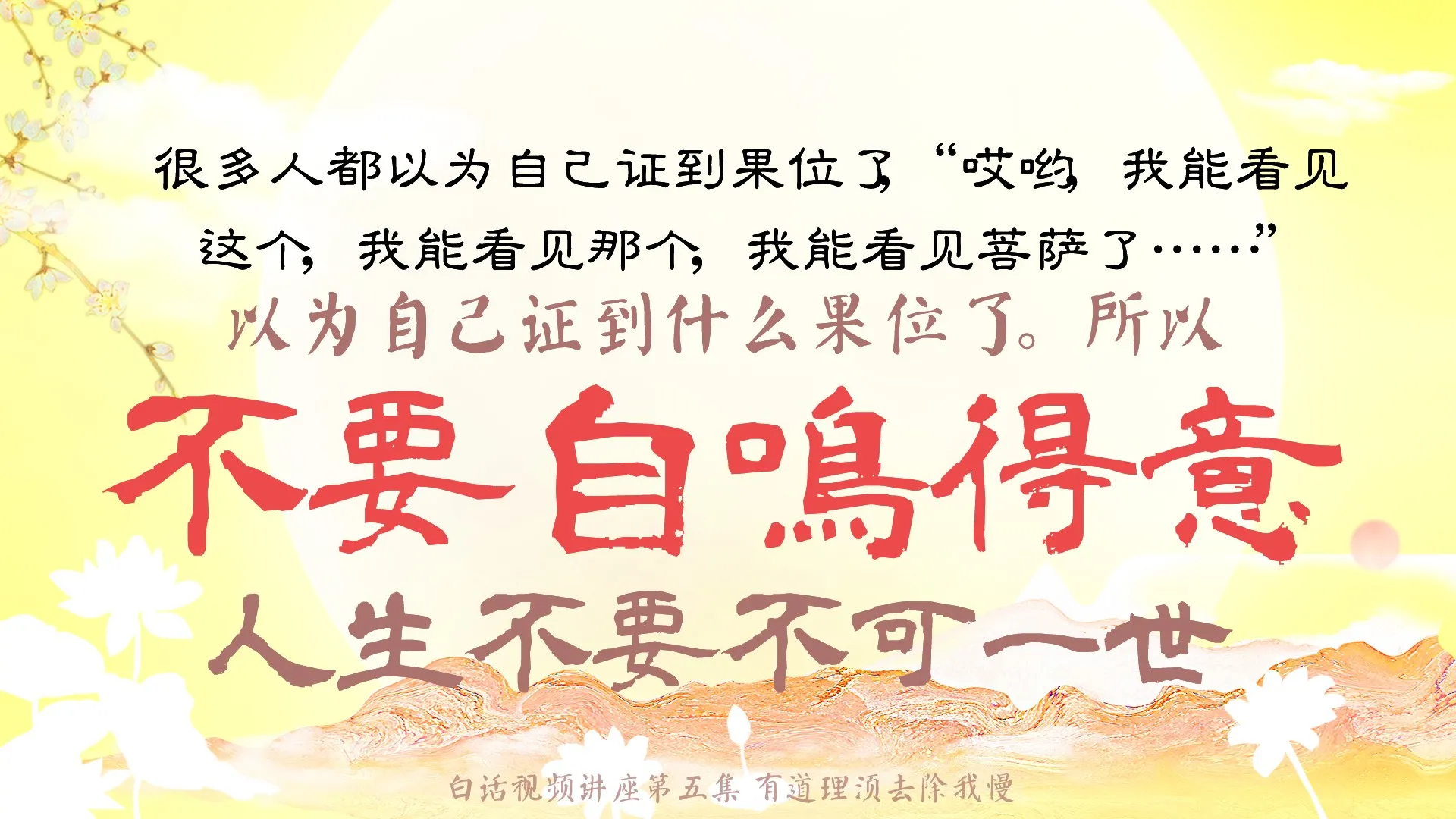 很多人都以为自己证到果位了,“哎哟,我能看见这个,我能看见那个,我能看见菩萨了……”以为自己证到什么果位了。所以不要自鸣得意,人生不要不可一世。